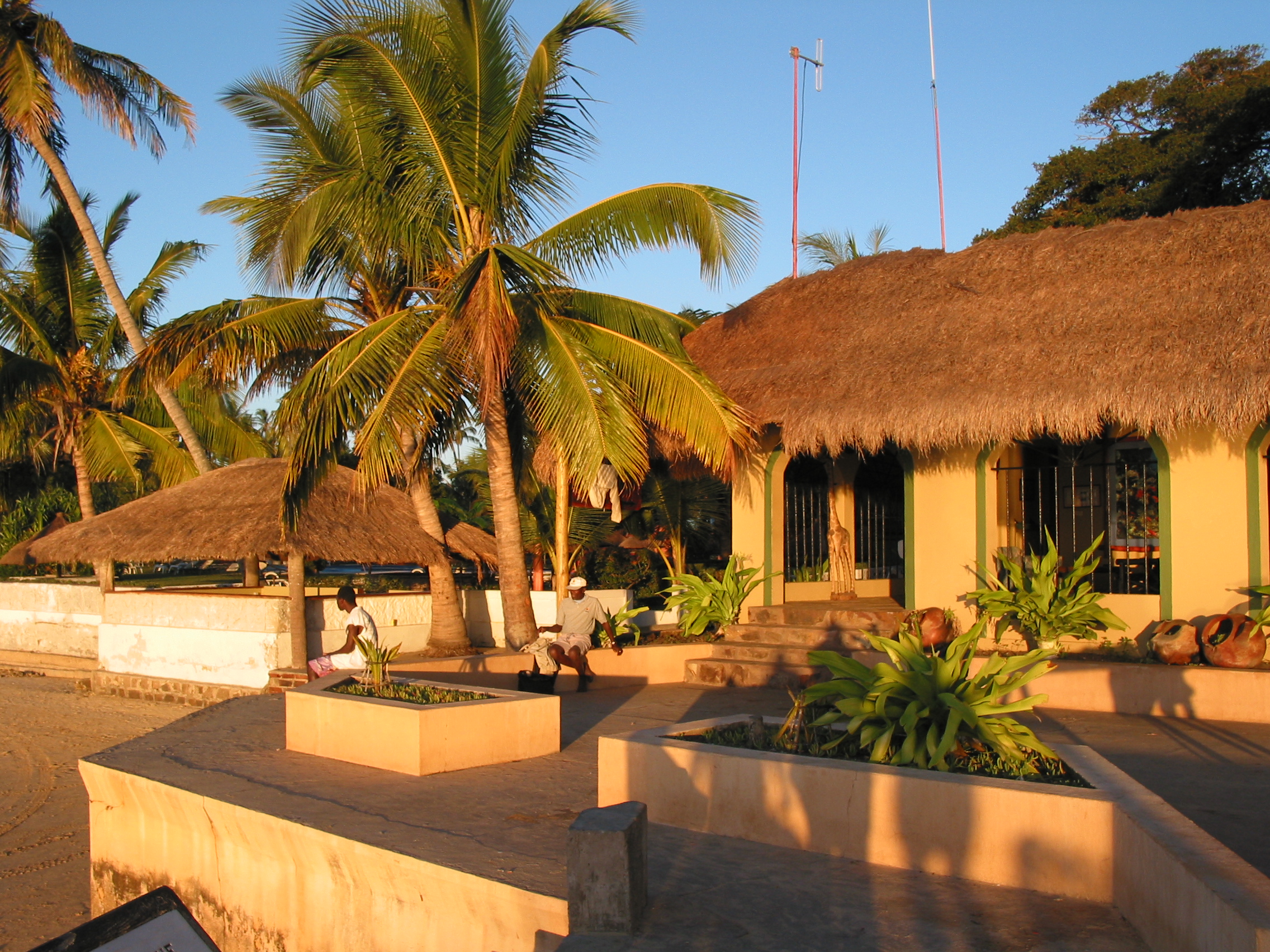The hotel is lovely – ethnic and in keeping with the holiday atmosphere of the Island, We order Prego and chips and our new friends offer us their room key where we relish in a hot fresh water shower. What super people Johnny and Molly are!